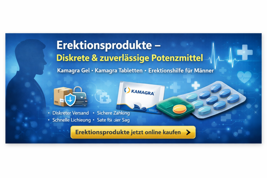 In unserem Online Shop finden Sie hochwertige Erektionsprodukte für Männer, die gezielt bei Erektionsproblemen unterstützen. Wenn Sie Erektionsprodukte online kaufen möchten, sind Sie hier richtig. Unser Sortiment umfasst bewährte Potenzmittel, darunter beliebte Produkte wie Kamagra Gel und Kamagra Tabletten.